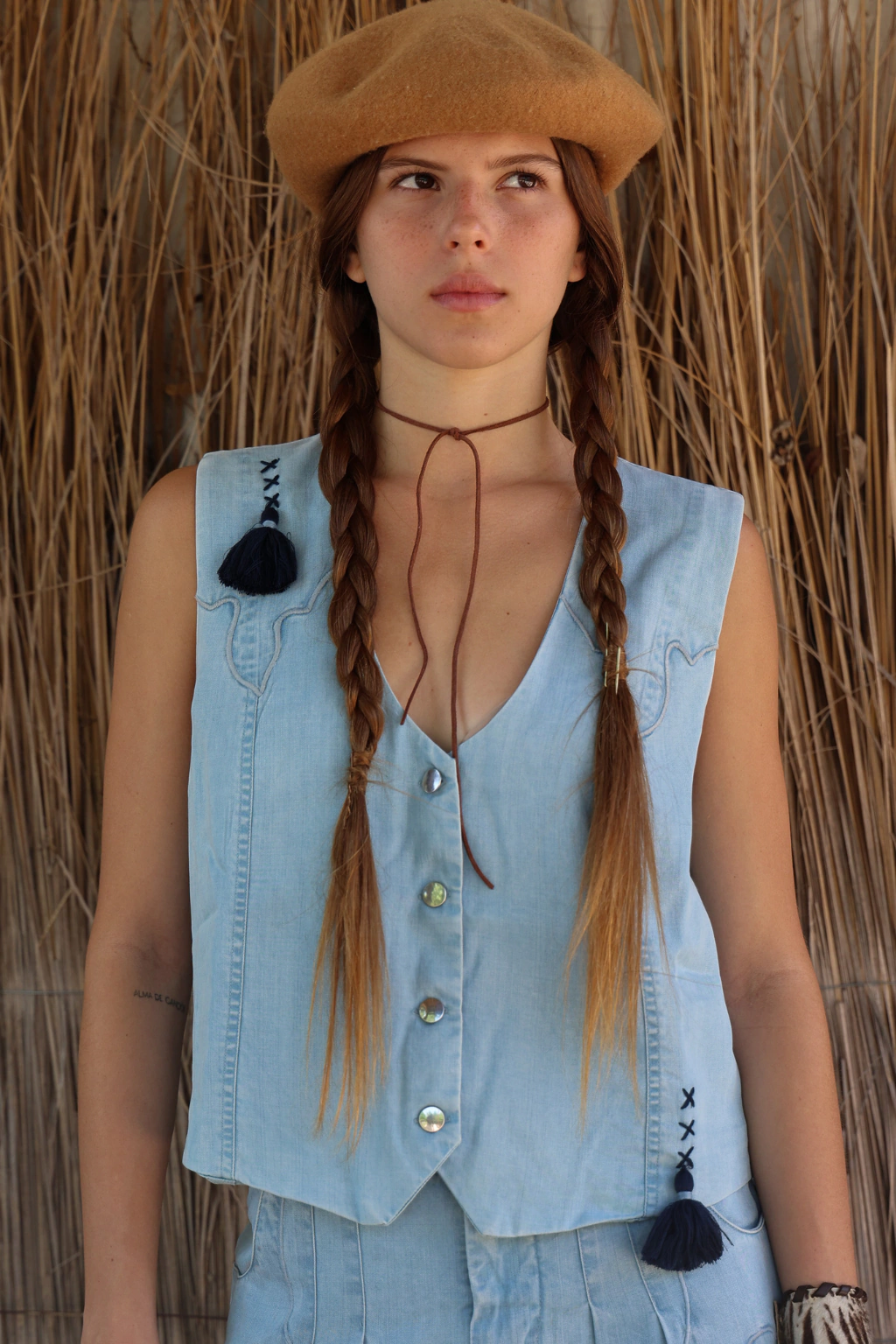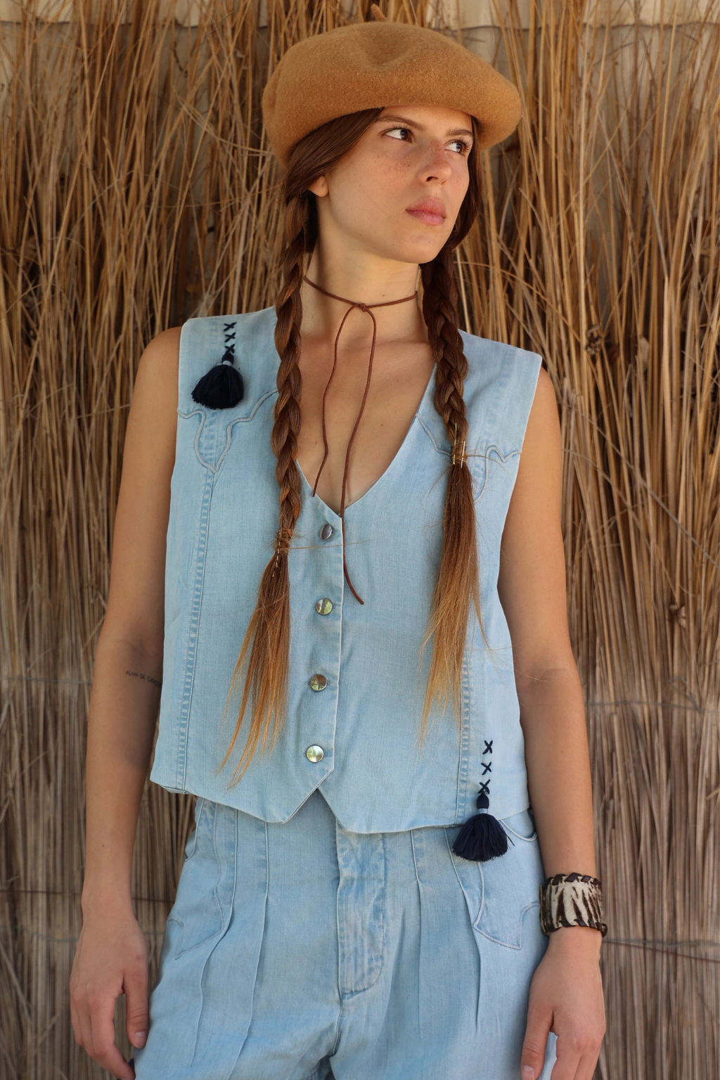 El Chaleco Equino, fresco, cómodo y liviano, confeccionado en Tencel, con un acabado DENIM y detalles hechos a mano. Con una estilo que rinde homenaje a nuestra cultura gauchesca, junto con el Pantalon Equino, es un basico para todos los dias de verano, un look full AE, que refleja el espíritu libre y vibrante de esta colección.