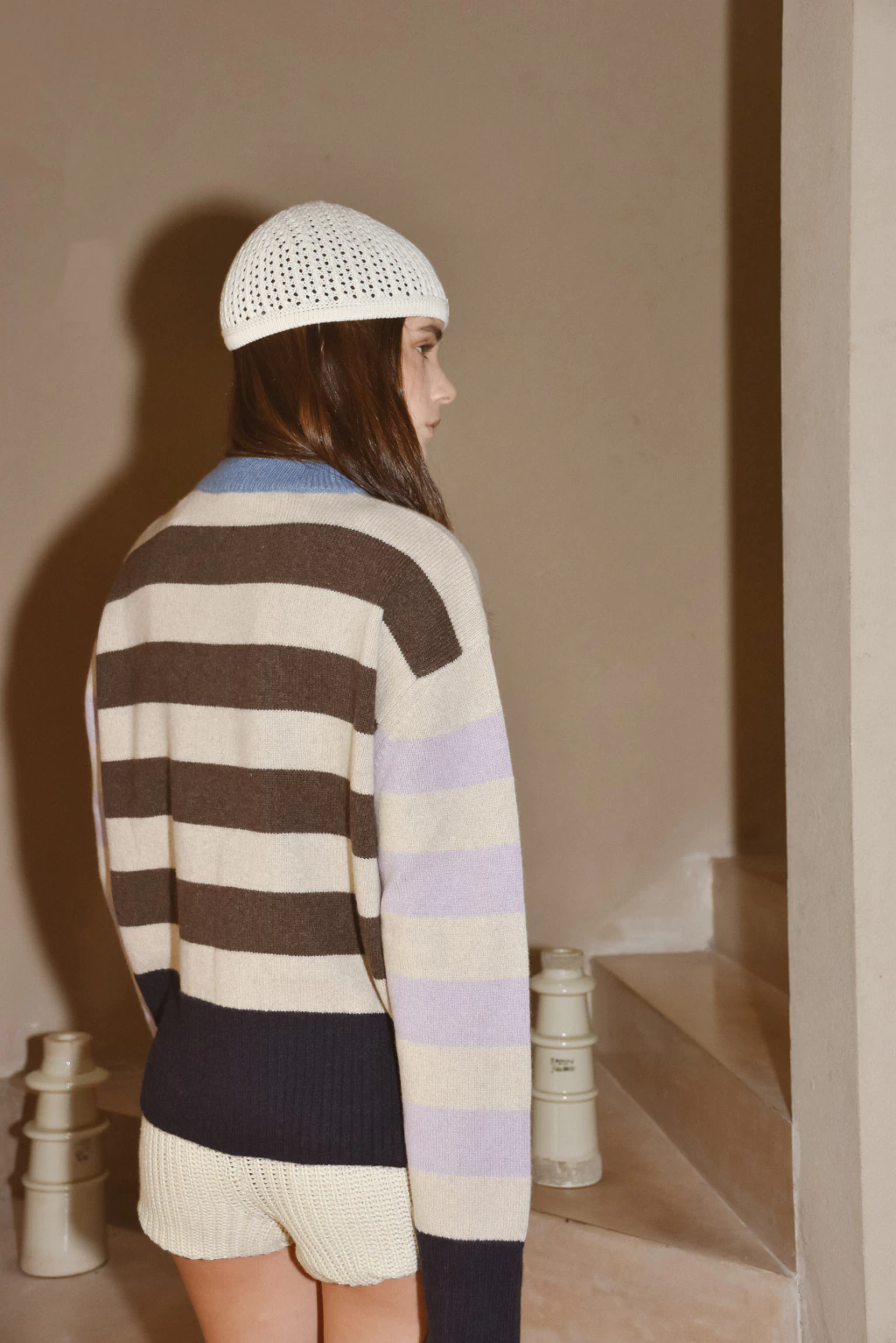 El sweater Galope tiene un calce oversize y un diseño de rayas coloridas que te da un look cómodo y descontracturado. Una prenda con sello propio, fiel al estilo único de Anshka Elliot.