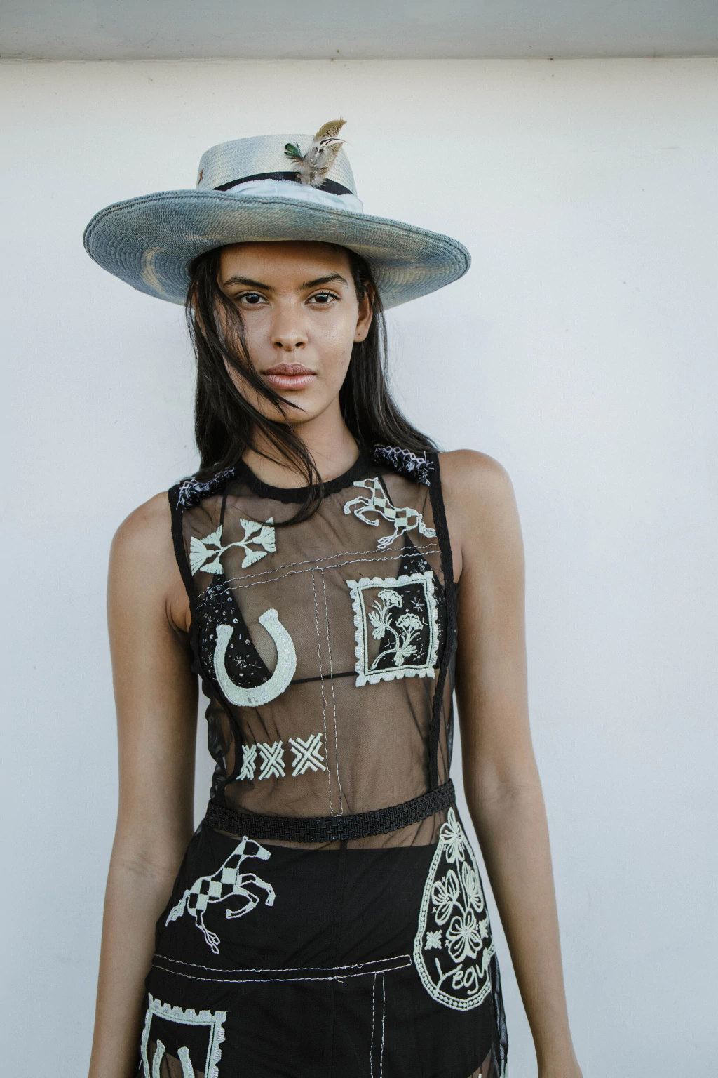 Esta colección es raíz y horizonte: mares, sierras, viento y salitre que se encuentran en prendas bordadas, flecos en movimiento y estampas que respiran fuerza.